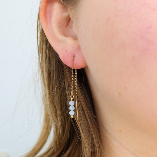 Threader oorbellen aquamarijn zilver