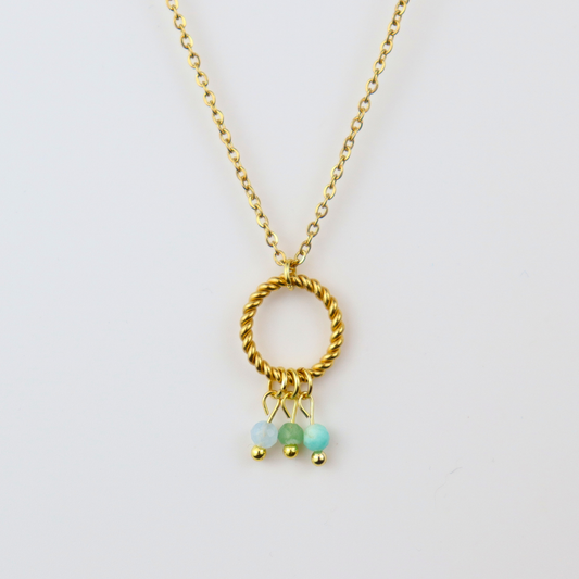 Ketting 'balans' goud - aquamarijn, aventurijn en amazoniet