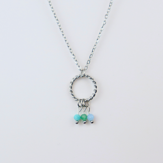 Ketting 'balans' zilver - aquamarijn, aventurijn en amazoniet