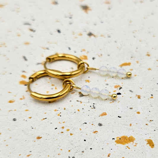 Oorbellen 'kracht' zilver – granaat, maansteen en rozenkwarts
