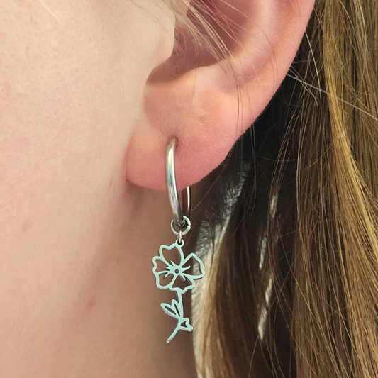 Geboortebloem oorbellen mei zilver