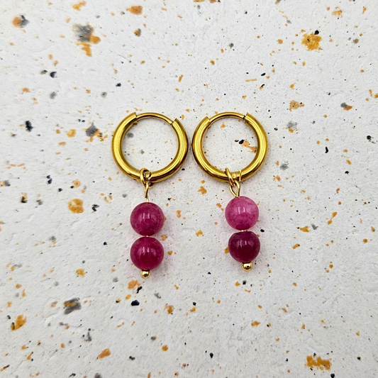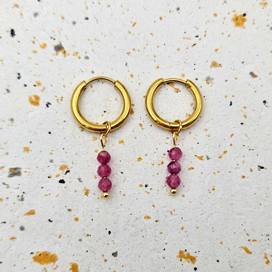 Oorbellen 'liefde' goud - rozenkwarts, aardbeienkwarts en toermalijn