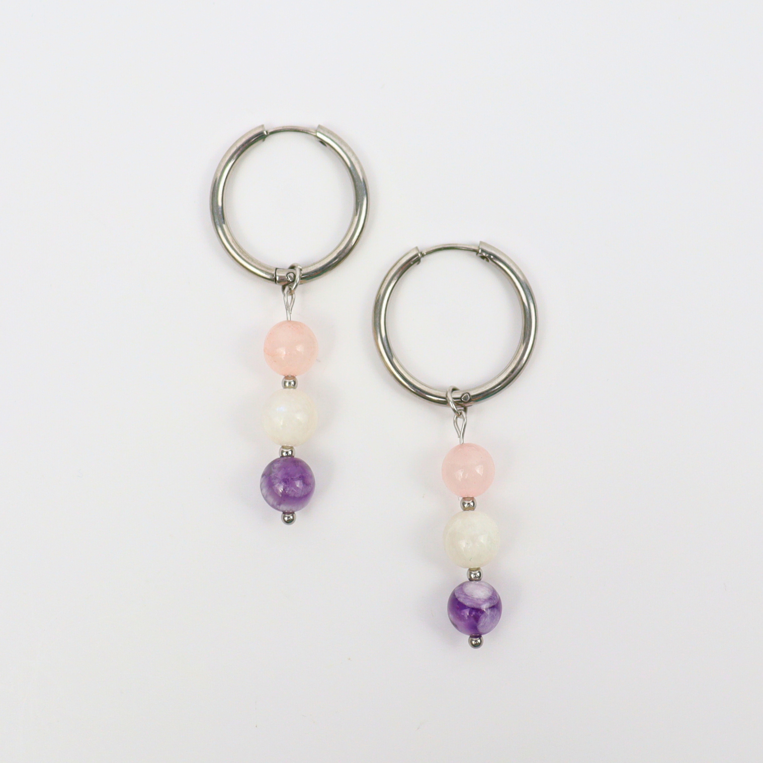 - Sinnvolle Energie: Amethyst beruhigt, Mondstein stärkt die Intuition und Rosenquarz öffnet das Herz.