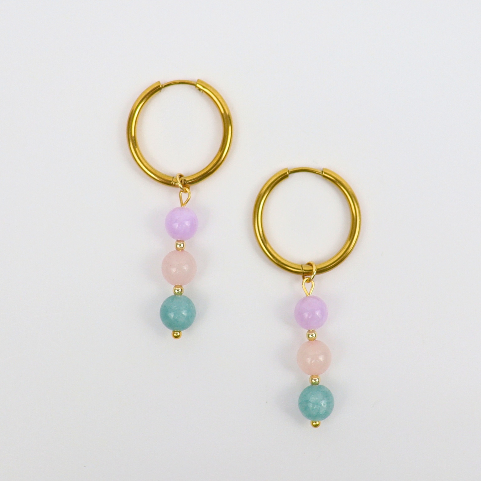 Ehrlich, gesellig und harmonisch – genau das zeichnet das Sternzeichen Waage aus. Diese Ohrringe sind aus vergoldetem Edelstahl gefertigt und mit drei Edelsteinen besetzt, die perfekt zu diesem Zeichen passen: Aquamarin, Rosenquarz und Jade. Gemeinsam fördern diese Edelsteine innere Ruhe und helfen Ihnen, sich anderen zu öffnen.