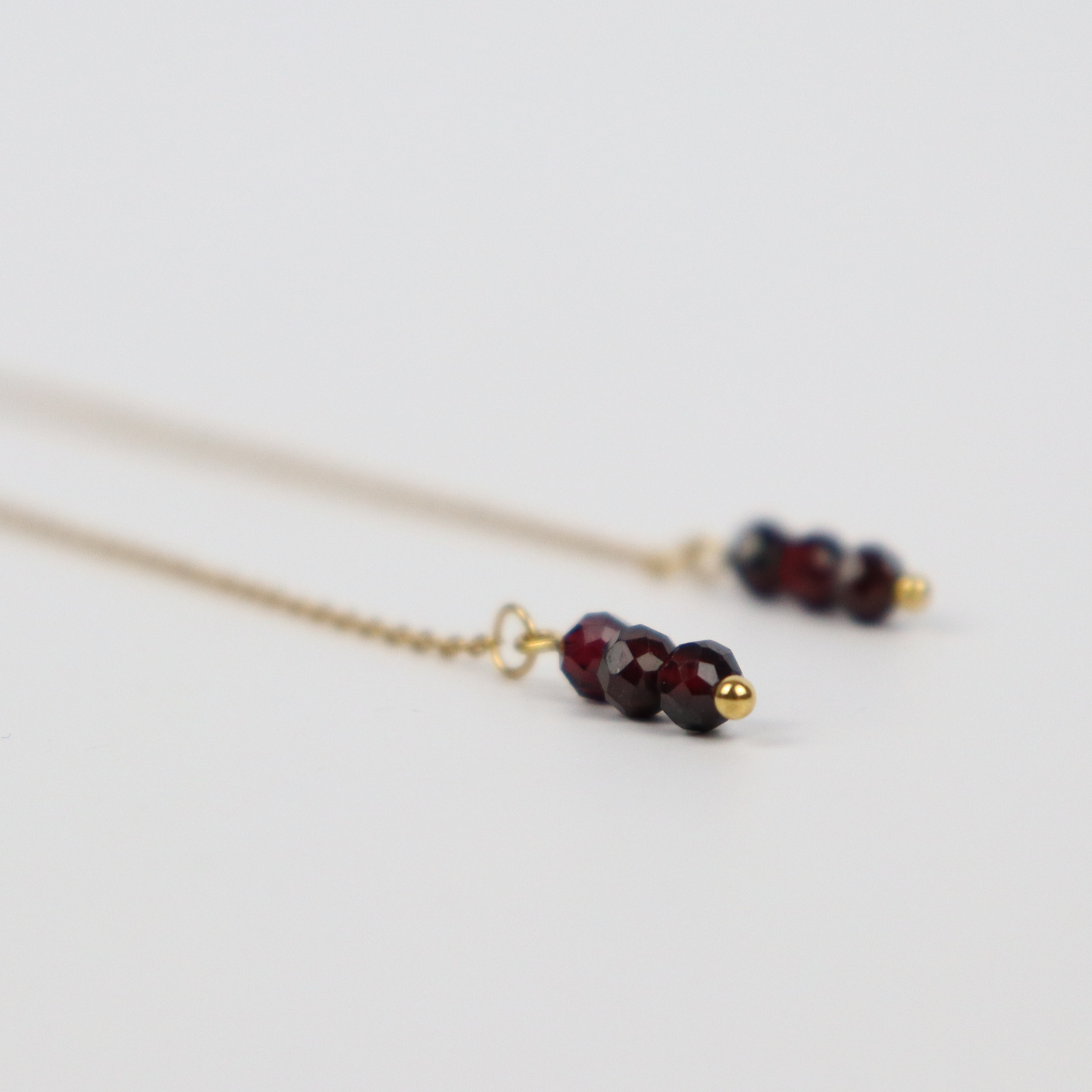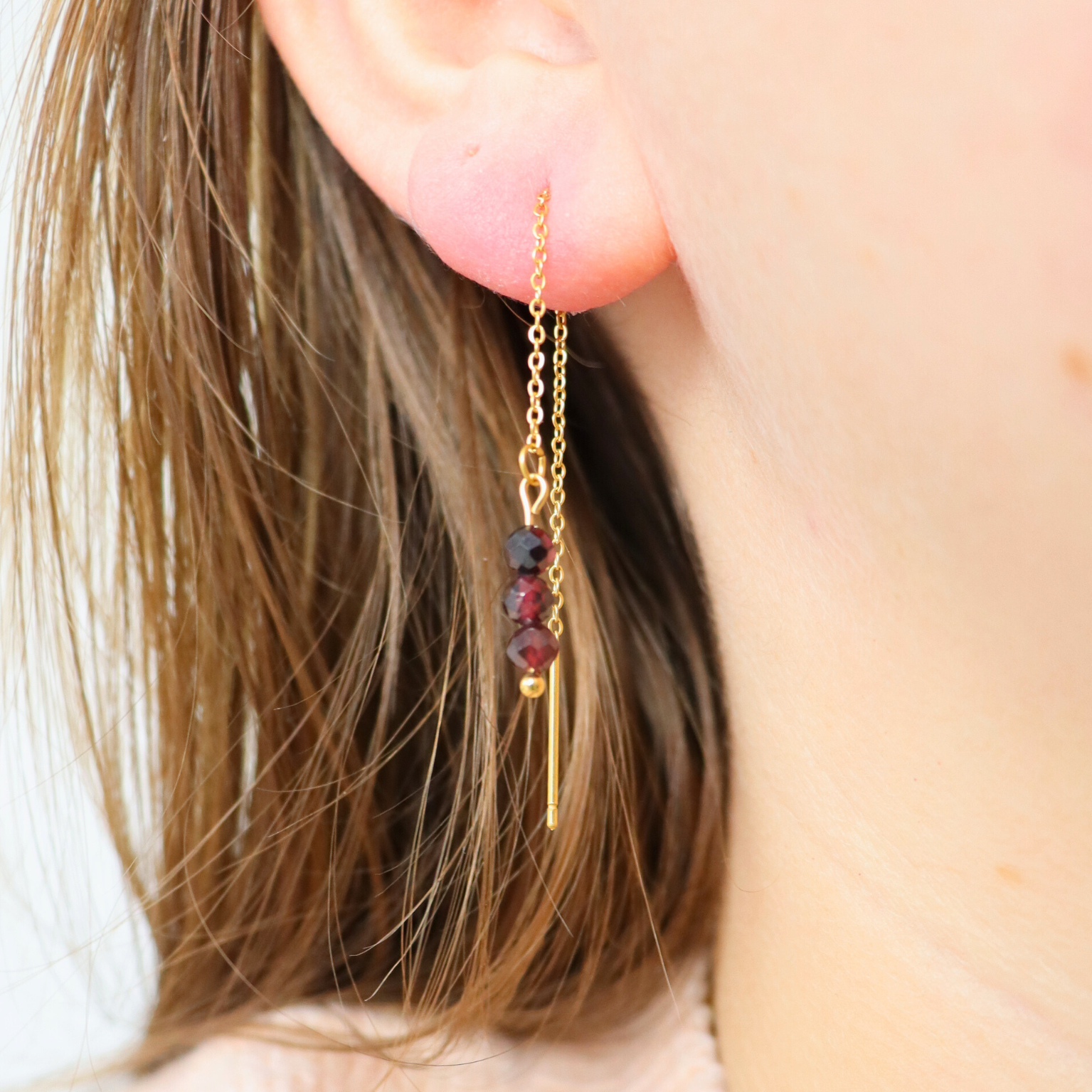 Mit diesen Ohrhängern vereinen Sie die feurige und kraftvolle Energie des Granats . Die Ohrringe aus vergoldetem Edelstahl bestechen durch facettierte Granatsteine, die das Licht wunderschön einfangen. Tragen Sie sie einzeln für einen minimalistischen Look oder kombinieren Sie sie mit anderen Ohrringen. Granat gilt als Stein der Leidenschaft und Lebensfreude und erinnert Sie daran, das Leben in vollen Zügen zu genießen.