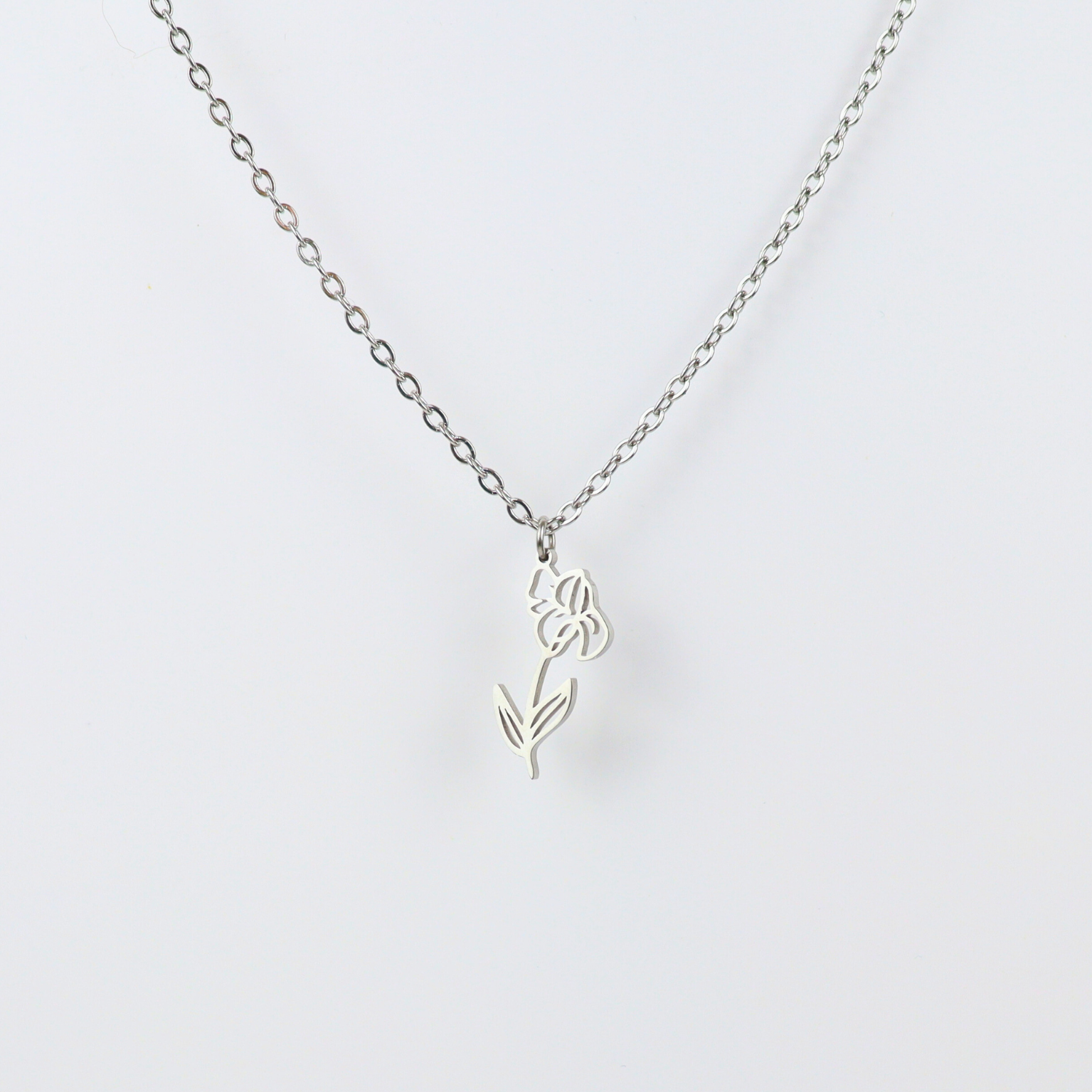 Draag jouw geboortebloem altijd met je mee met onze geboortebloem ketting. Deze ketting, gemaakt van zilverkleurig stainless steel, heeft een hanger met de geboortebloem van februari: de iris. Deze bloem staat symbool voor moed en wijsheid. De iris herinnert je eraan om krachtig in het leven te staan en je eigen pad te volgen.
