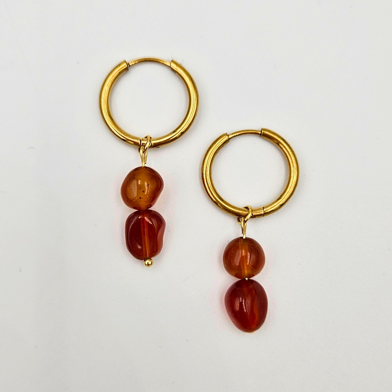 Draag de energieke en inspirerende energie van carneool mee met deze subtiele oorbellen. De oorbellen zijn gemaakt van goldplated stainless steel met carneool edelstenen. Elke edelsteen is uniek van vorm waardoor geen enkel paar oorbellen exact hetzelfde is en jij altijd een uniek paar draagt. Carneool staat bekend als de steen van moed, vitaliteit en creativiteit, en helpt je vertrouwen in jezelf te houden, wat er ook gebeurt.