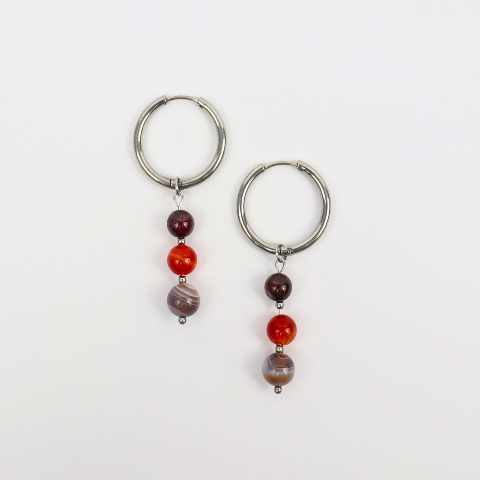Draag de vurige energie van het sterrenbeeld ram met deze betekenisvolle oorbellen. De oorbellen zijn gemaakt van zilverkleurig stainless steel en drie edelstenen die perfect passen bij dit krachtige teken: agaat, carneool en granaat. Samen versterken ze de moed, daadkracht en vastberadenheid die zo kenmerkend zijn voor Ram.