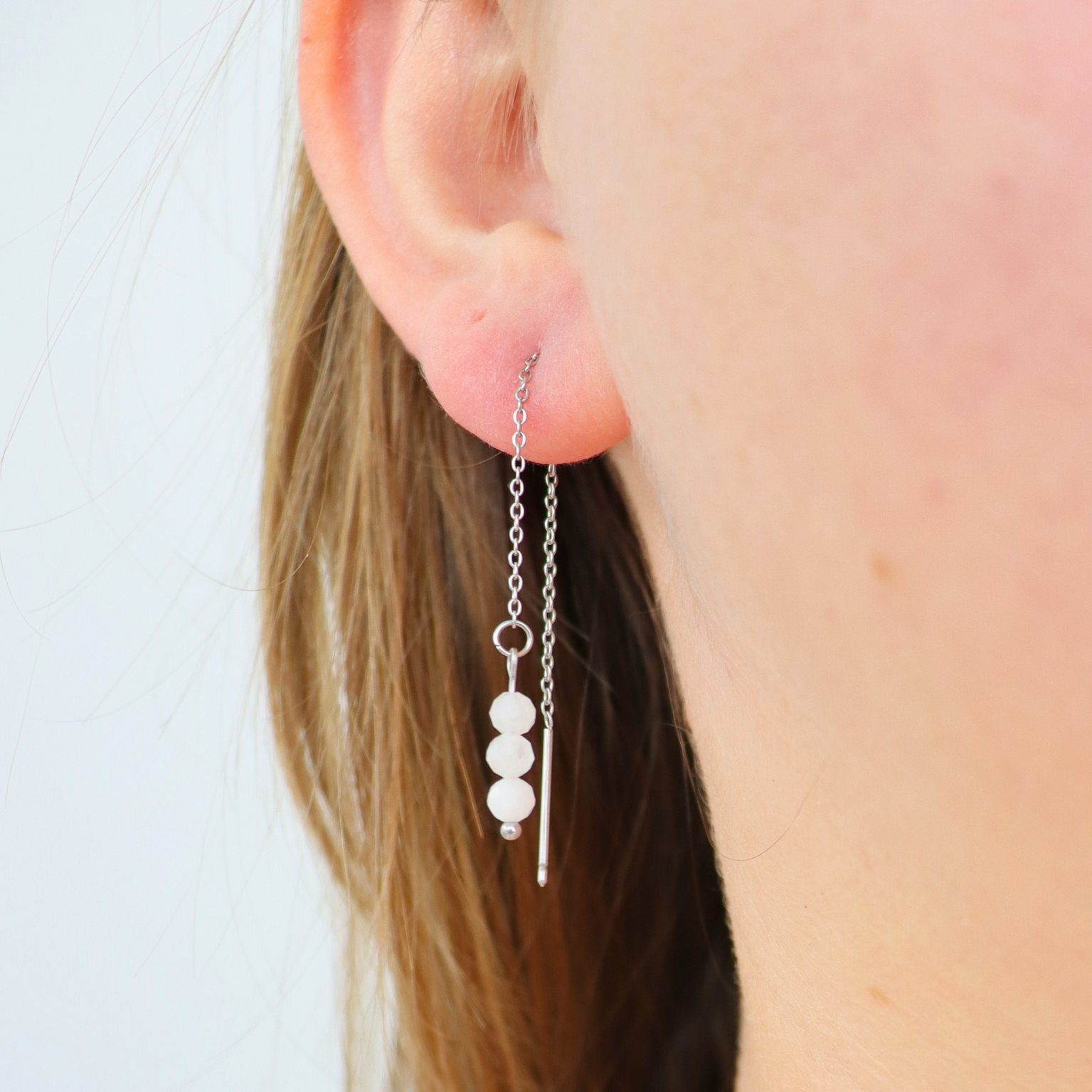 Threader oorbellen maansteen zilver